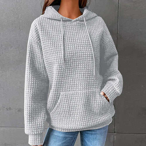 Women'swaffle hooded long-sleeved letter printed sweater